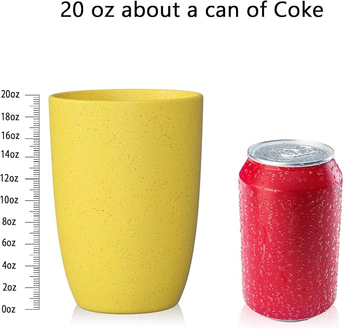 Homienly 8pcs Wheat Straw Fiber Cups, 20 Oz Reusable Drinking Cups, Unbreakable, Dishwasher Safe, Microwave Safe, BPA Free, Organic, Classic Style, Yellow