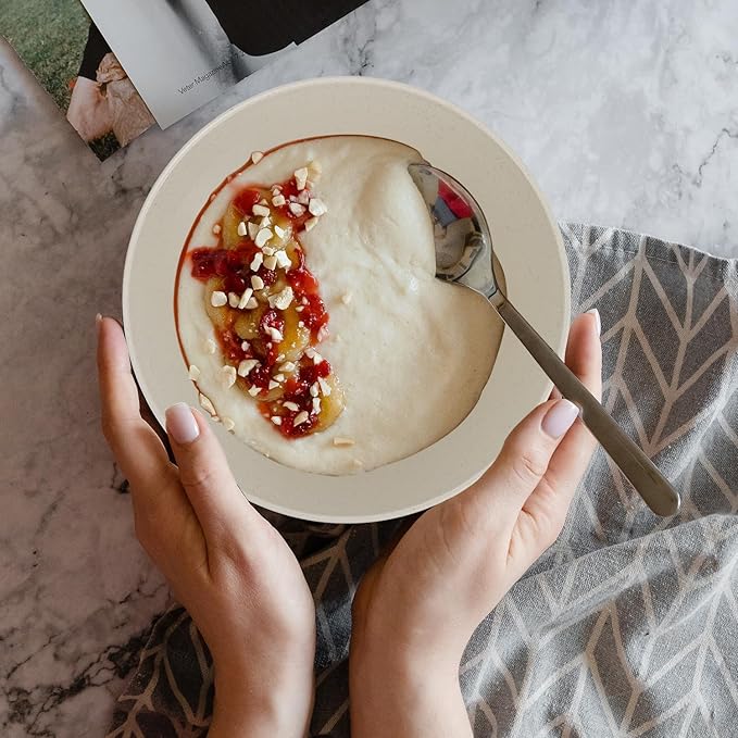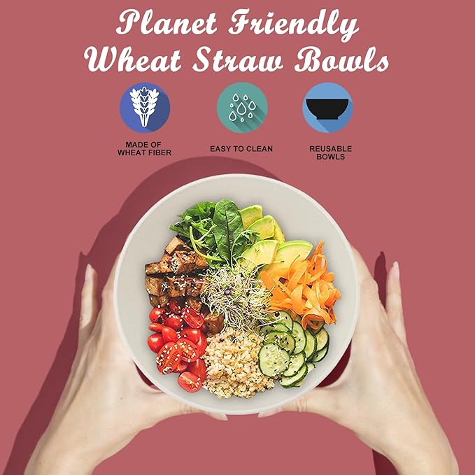 - 🌾【More Thick & Large Capacity】The wheat straw bowls are designed with thicker and smooth round edges which gives you a good touch and prevent deformation.Our wheat straw bowls set has ideal shape and antiskid stripe which avoid spilling your food. Additionally, it is perfect for cereal, salad, fruit, rice, noodle and so on.