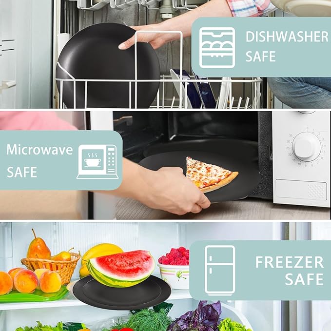 - DISHWASHER & MICROWAVE SAFE PLATES:Our black plastic dinnerware sets are solid and durable, and easy to clean. With the admirable heat-resisting ability, these black dinnerware sets is safe to use in the microwave and dishwasher.