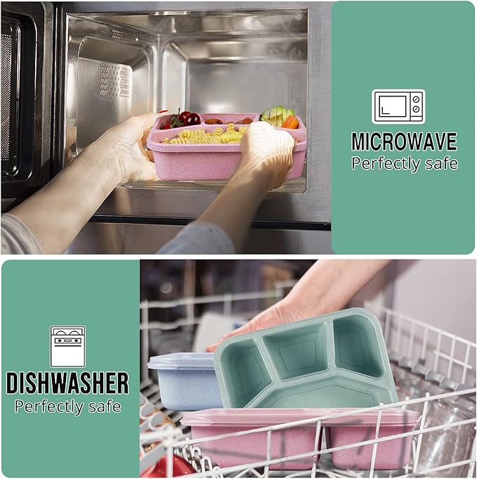 - 【FOOD-GRADE & REUSABLE LUNCH BOX】- These meal prep lunch containers are made of durable wheat straw and food grade PP material, BPA free, no odor, stain-resistant. It is a great bento box adult lunch box that can replace disposable lunch boxes, sturdy and reusable, easy to clean.