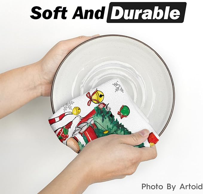 Artoid Mode Gnomes Xmas Trees Christmas Kitchen Towels Dish Towels, 18x26 Inch Daily Seasonal Winter Decoration Hand Towels Set of 2