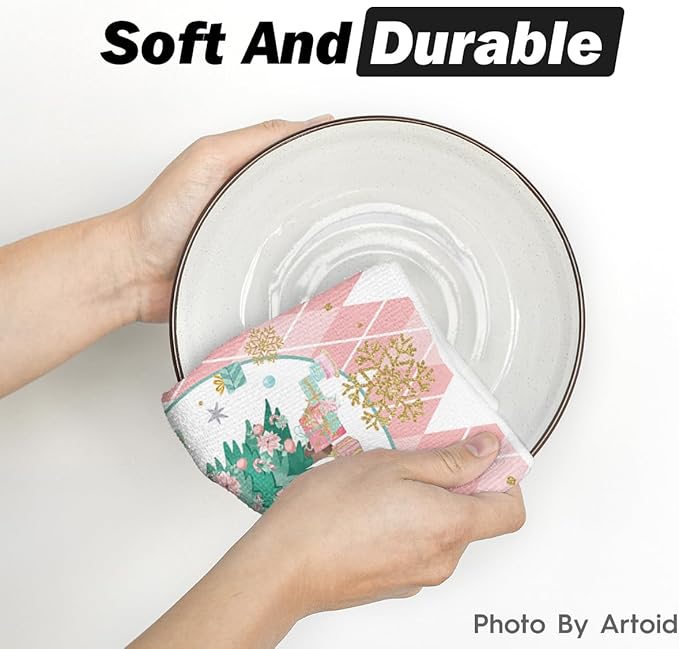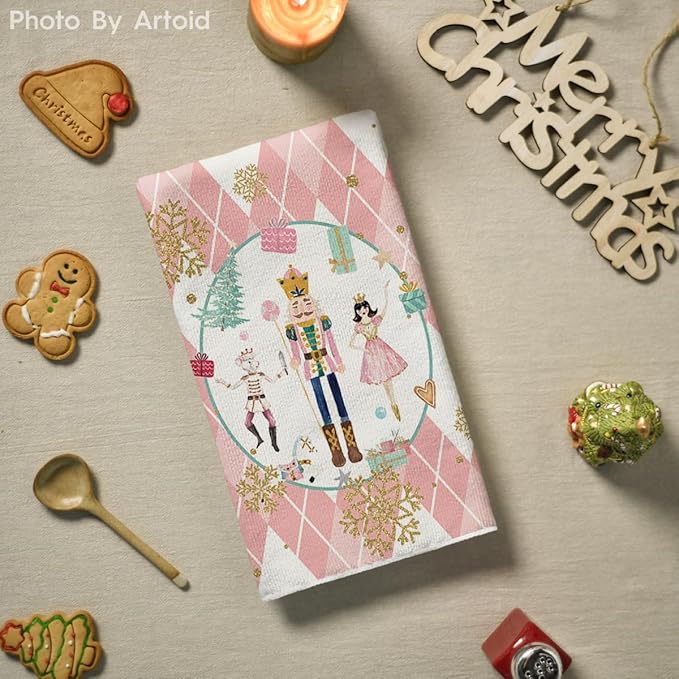 Artoid Mode Pink Nutcrackers Tree Christmas Kitchen Towels Dish Towels, 18x26 Inch Seasonal Winter Xmas Decoration Hand Towels Set of 2