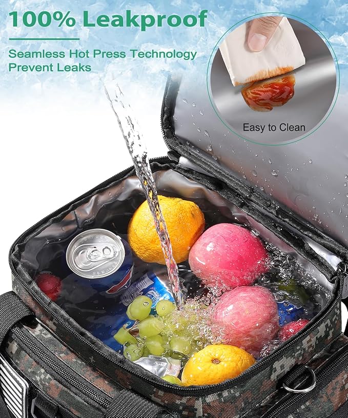 - 【Leakproof & Water-Resist】 The inner layer of the lunch cooler bag is made of extra thick and soft PEVA material. This material is seamlessly ultrasonically welded and offers 100% impermeability and tear resistance. It is also very easy to clean. The outer layer of the lunch bag is made of tear-resistant, high-density 600D Oxford fabric that protects the lunch bag's contents from rainwater spills.
