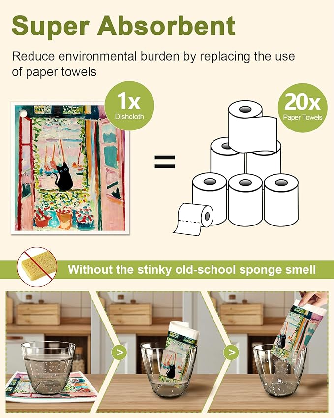 - REPLACES OF PAPER TOWELS: Our swedish dish towels saving your money to buy paper towel rolls at home, this cleaning cloth is a good alternative to sponges and paper towels, make cleaning fun and sustainable