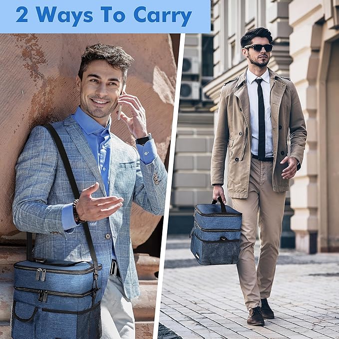 - Convenient Design - This lunch box for women and men features an adjustable shoulder strap for easy carrying.The double zipper ensures quick access, while 2 front pocketand 2 side mesh pockets store personal items. Stylish and functional for work, gym, or as a school lunch bag.