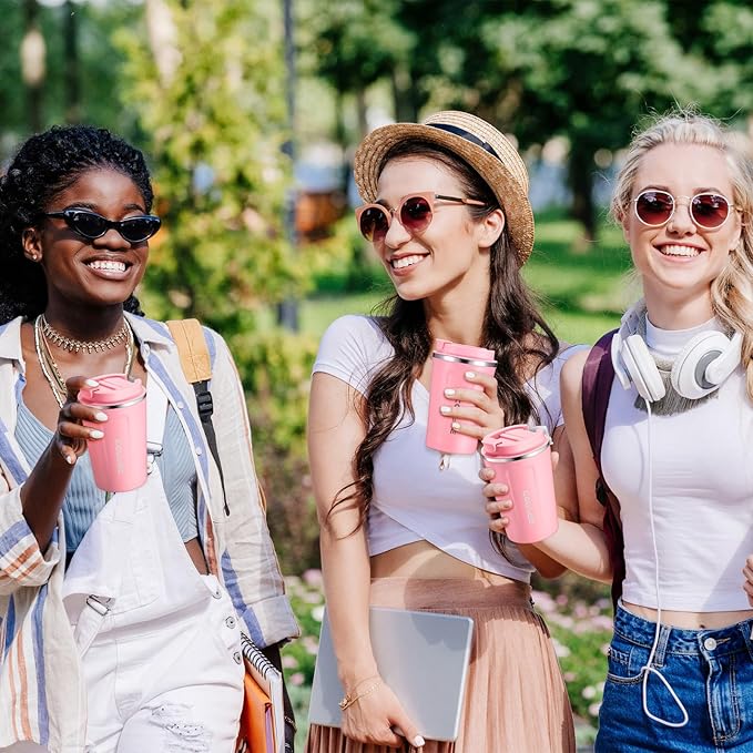 Sieral 4 Pcs 13 oz Travel Coffee Mug Insulated Reusable Coffee Cups with Leakproof Lid Stainless Steel Portable Tumbler for Keep Hot or Ice Milk Tea(Pink)