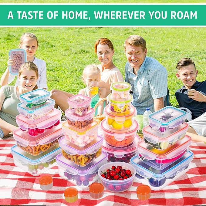 - VARIETY WITH MORE CAPACITY:23 containers with 23 lids of variable sizes a perfect fit for different variety of entrees. Suitable for occasions like carrying to picnic or events or daily uneaten food storage. This set includes 9* Rectangular Containers (2*50.7oz, 2*34 oz, 2*17 oz, 2*8.1oz, 1*4 oz), 9*Round Container (1*40.6oz, 1*23.7oz, 1*13.5oz, 1*6.1oz, 1*2.4 oz ,4 Suaces Boxes 1.35oz),5 Square Container (1*40.6oz, 1*23.7oz, 1*13.5oz, 1*6 oz, 1*2.4 oz)