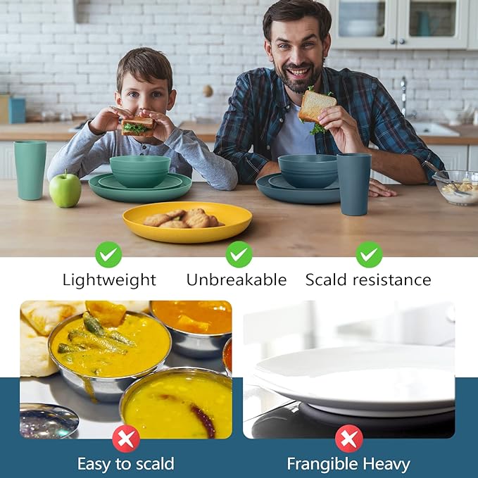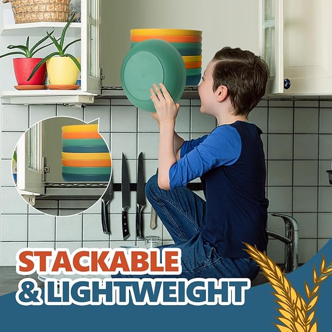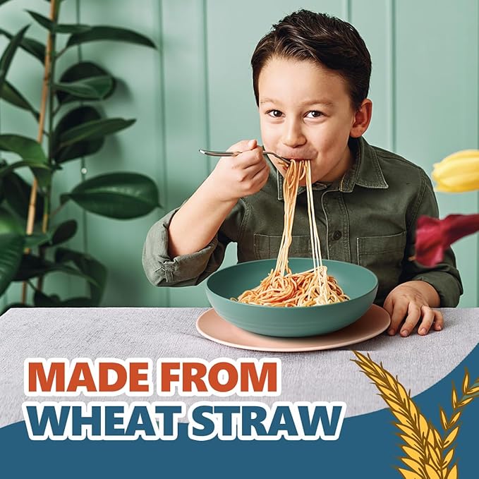 - MATERIAL: Made of wheat straw and plastic material. 100% BPA free. Sturdy, will not break or chip like porcelain or ceramic.