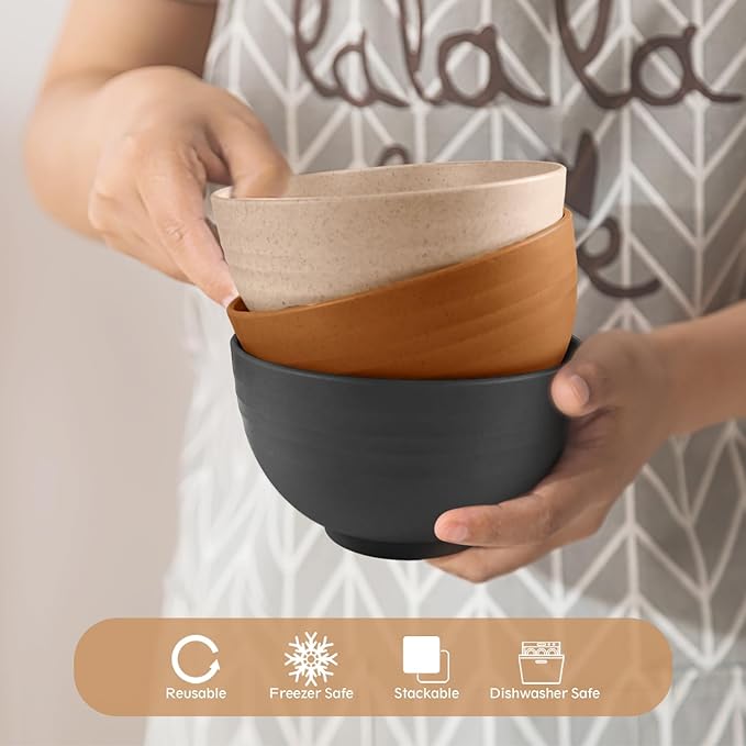 - MATERIAL: Made of wheat straw and plastic material. 100% BPA free. Sturdy, will not break or chip like porcelain or ceramic.
