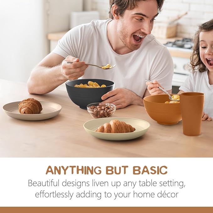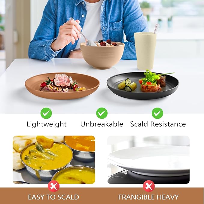- PACKAGE INCLUDE: This wheat straw dinnerware sets include 32 pieces in total. Easy to match your existing flatware.