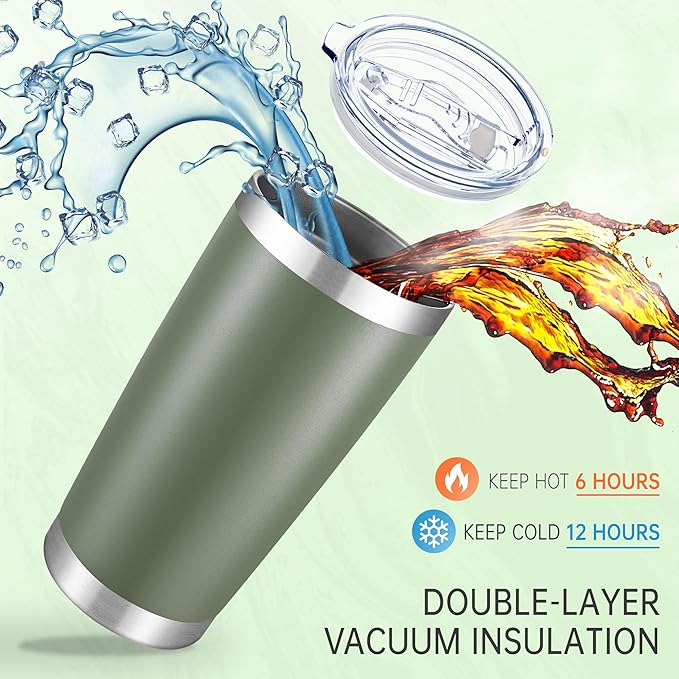 20 oz Tumblers Bulk Stainless Steel Tumbler with Lid Double Wall Vacuum Insulated Coffee Mug 20oz Powder Coated Cup for Hot and Cold Drinks, Army Green, 6 pack