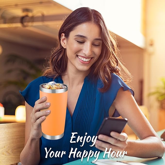 20 oz Tumbler Stainless Steel Tumblers with Lid Double Wall Vacuum Insulated Coffee Mug 20oz Powder Coated Cup for Hot and Cold Drinks, Orange, 1 pack