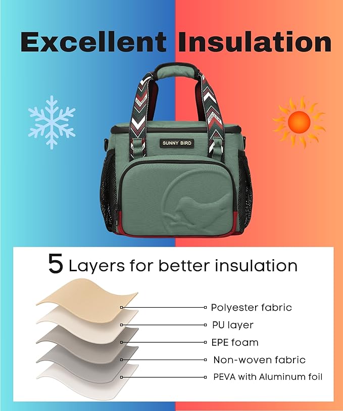 - Thermal Insulation - Keep your food and drinks warm or cool for hours! Made with thick EPE foam, PEVA material, and aluminum foil lining, this bag is designed to maintain temperature as long as possible—ideal for picnics, commutes, and day trips.