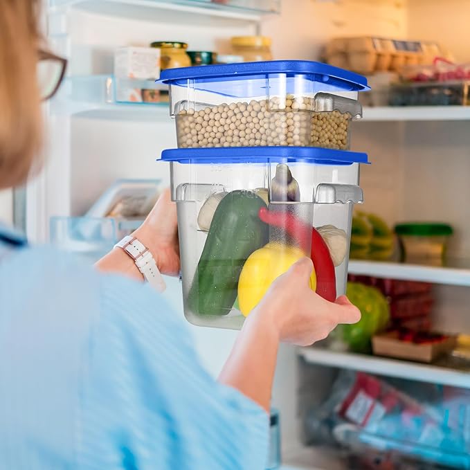 Suclain 8 Pcs Food Storage Container with Lids Set 2qt and 4qt Square Clear Commercial Containers with Scales Handles for Home Restaurant Kitchen Food Storage, Marinating Meat, Proof Dough (Blue)