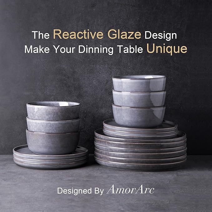 AmorArc Stoneware Dinnerware Sets,Round Reactive Ceramic Plates and Bowls Sets,Highly Scrath Resistant | Dishwasher & Microwave Safe Dishes,Service for 6 (18pc)