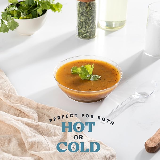 - Use clear plastic soup bowls for serving soup, salad, ice cream, cereal, dips, condiments, and more. A crystal clear finish allows the contents of your bowl to show.