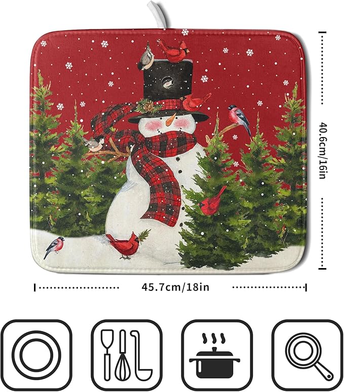 - Feature:This Christmas snowman dish drying mats use high absorbent microfiber,duralble and washable,Keep your counter dry and clean.