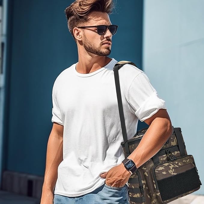 Tactical Lunch Box for Men, Insulated Bag Adult, Thermal Lunchbox Leakproof Waterproof Cooler Bag, Dual Compartment Tote, Large Pail Work Office Camping Travel(Black Camo)