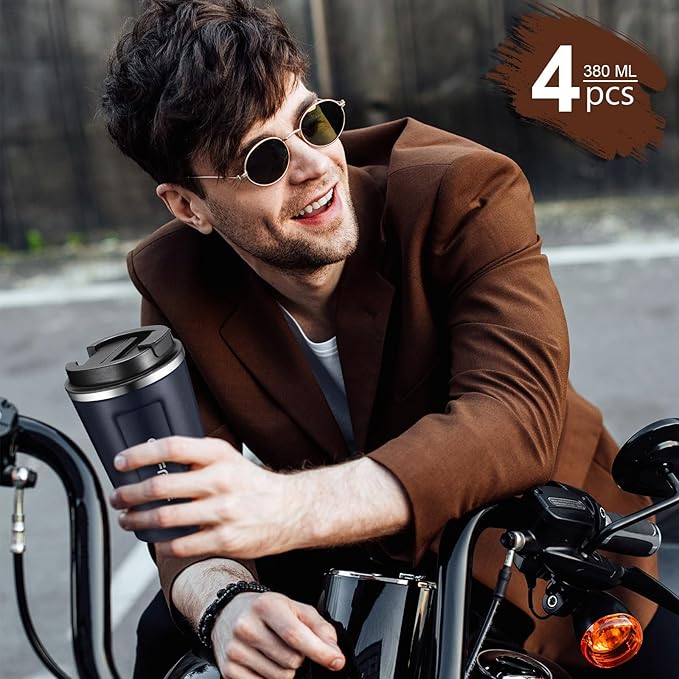 Sieral 4 Pcs 13 oz Travel Coffee Mug Insulated Reusable Coffee Cups with Leakproof Lid Stainless Steel Portable Tumbler for Keep Hot or Ice Milk Tea(Navy Blue)