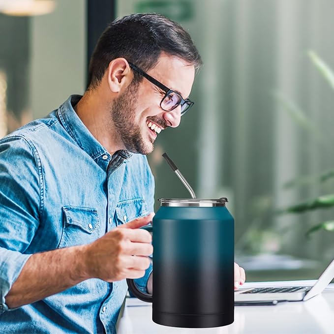 - Wide Mouth 50 Ounce TUMBLER WITH HANDLE - The durable built-in handle features a curved-edge and thicker design for a comfortable and easier grip, making it truly continental for you to carry on the go. The wide-mouth stainless steel tumblers cup makes it easier to fill drinks, fruit and large ice cubes, and to clean the tumbler. With this big wide mouth insulated coffee cups, you can also enjoy taking swig