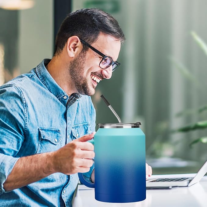 50oz Insulated Mug Tumbler with Handle - Keep Cold-36h & Hot-24h, Stainless Steel Water Jug 50 oz Coffee Mugs with Straw & Spout Lid, Wide Mouth Metal Water Bottle Camping Flask Hospital Cup Travel