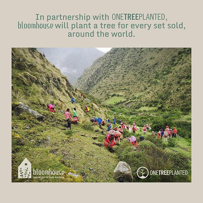 - ONE TREE PLANTED PER SET SOLD: In partnership with One Tree Planted, bloomhouse will plant a tree around the world for every set sold, keeping our planet healthy and thriving while encouraging acts of kindness and growth.