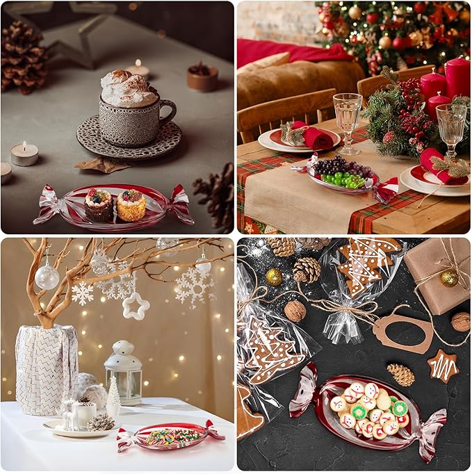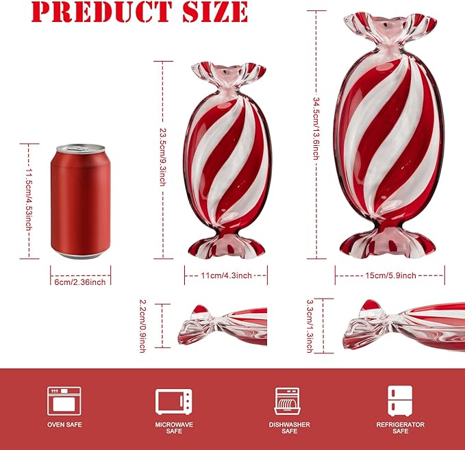 - š¬ć High Quality ć-- Crafted from fine glass, wall thickness is not easy to damage. This large candy shaped serving platter adds a delightful charm to every table and makes a perfect Christmas home decor piece.