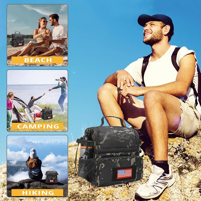ATRIPACK 2 Compartment Lunch Bag for Men Adult, Tactical Lunch Box Leakproof Insulated Large Cooler Bag for Work with Adjustable Shoulder Strap Flag Double Layer Lunch Pail(Camo-Black)