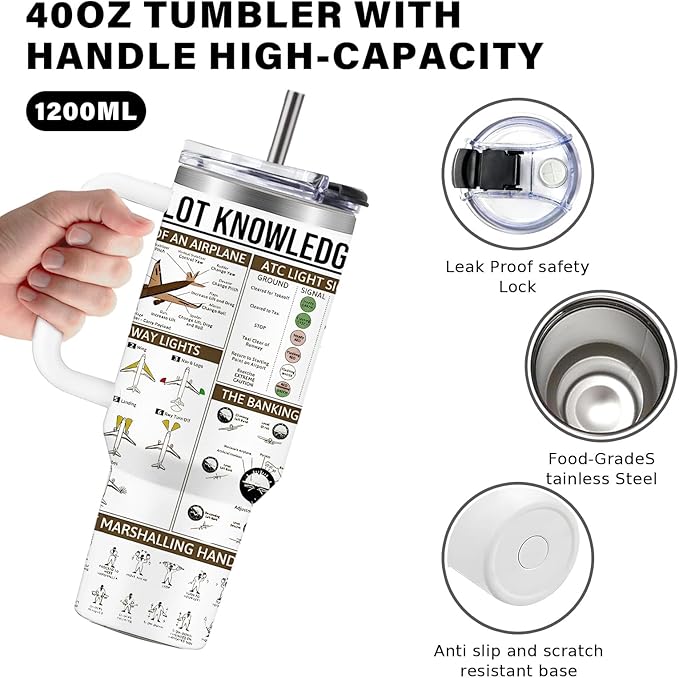 - ✈️【Long-Lasting Design for Pilots on the Go】Crafted with a durable and fade-resistant design, this 40oz tumbler is built to withstand the demands of a pilot's busy schedule. It will keep their coffee hot and refreshing throughout their flights, ensuring they stay energized and focused.