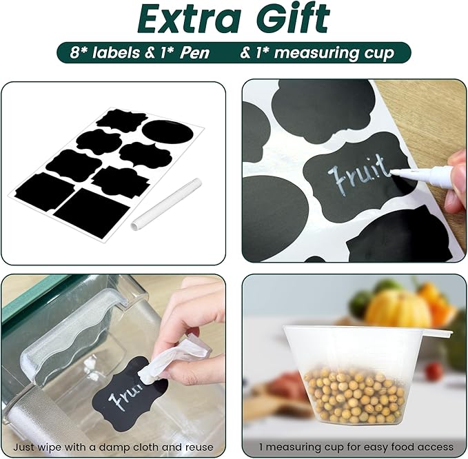 - Perfect set: 4 food storage containers with dimensions of 7.09 x 7.09 x 7.48 inches and a capacity of approximately 4 quarts. They can hold a large amount of food, such as flour, cooked food, vegetables, etc., and are perfect storage containers for keeping food fresh