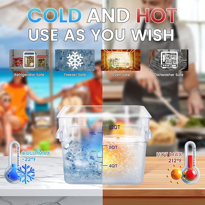 4 Pack Clear Food Storage Containers with Lids and Handles Polycarbonate Square Commercial Food Containers, NSF (12Qt)