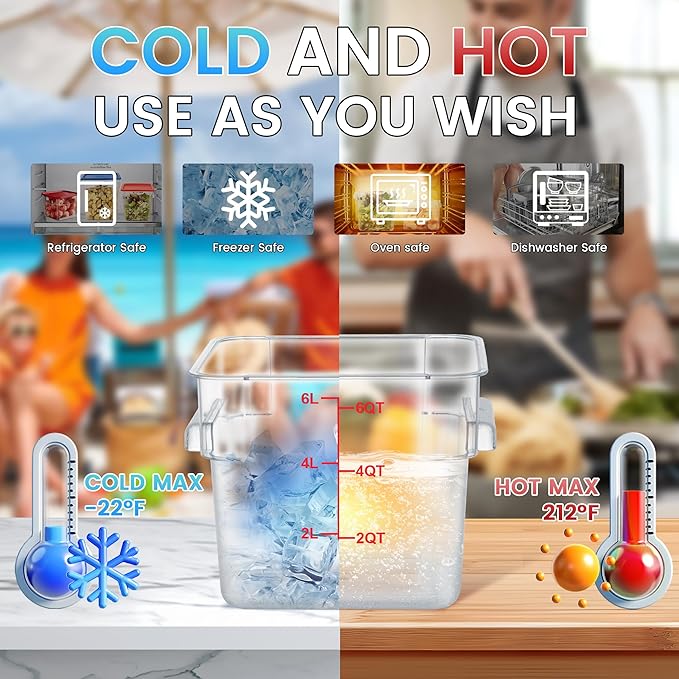 4 Pack Clear Food Storage Containers with Lids and Handles Polycarbonate Square Commercial Food Containers, NSF (6Qt)