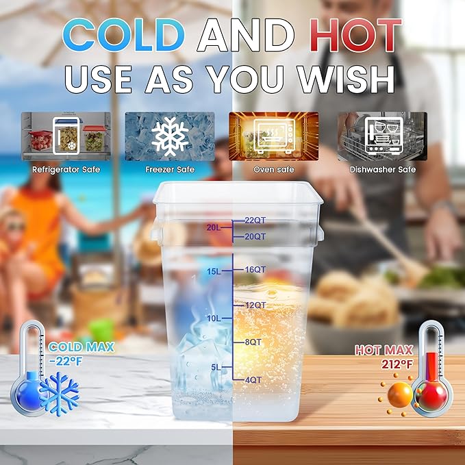 4 Pack Clear Food Storage Containers with Lids and Handles Polycarbonate Square Commercial Food Containers, NSF (22Qt)