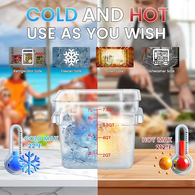 - Transparent Construction- made of polycarbonate, which is a more durable, lightweight, heat resistant, and smooth material, and the transparent bucket body allows you to easily identify the stored food