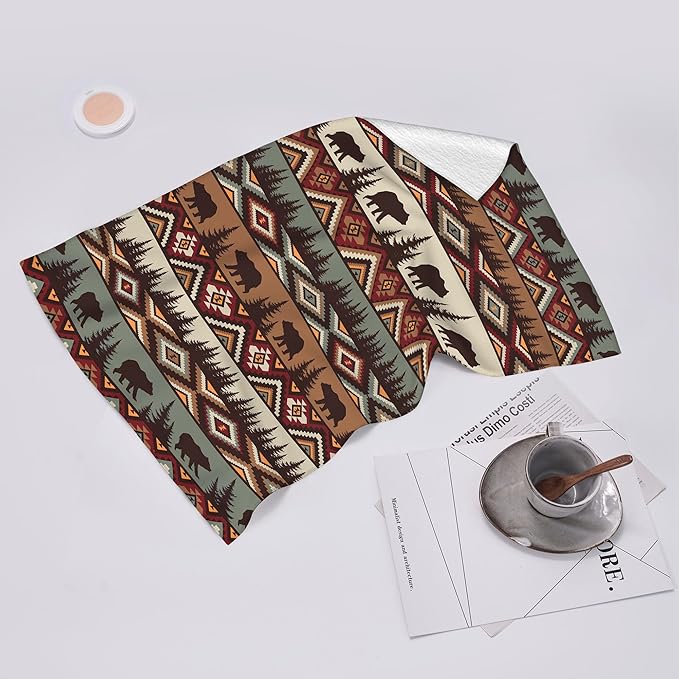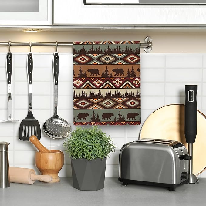 Vintage Rustic Dish Towels for Kitchen Drying Set of 2, Soft Absorbent Bear Mountain Kitchen Towels Tea Towels, Country Cabin Themed Hand Towels for Farmhouse Home Decorations 16x24 Inch