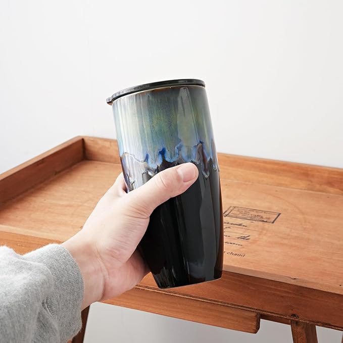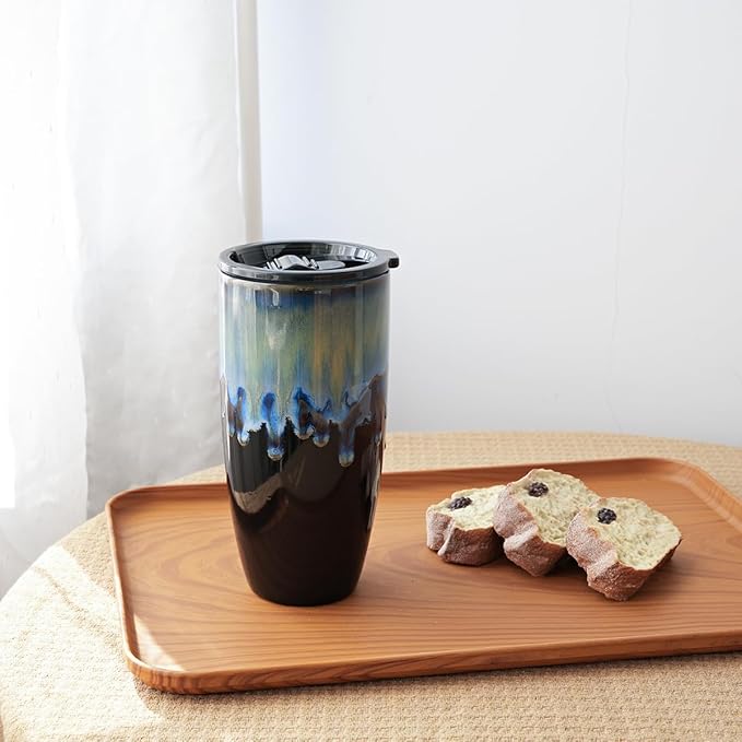 Bosmarlin Ceramic Travel Coffee Mug with Lid, 21 oz, Portable Coffee Cup for Car Cup Holder, Microwave and Dishwasher Safe, Reactive Glaze