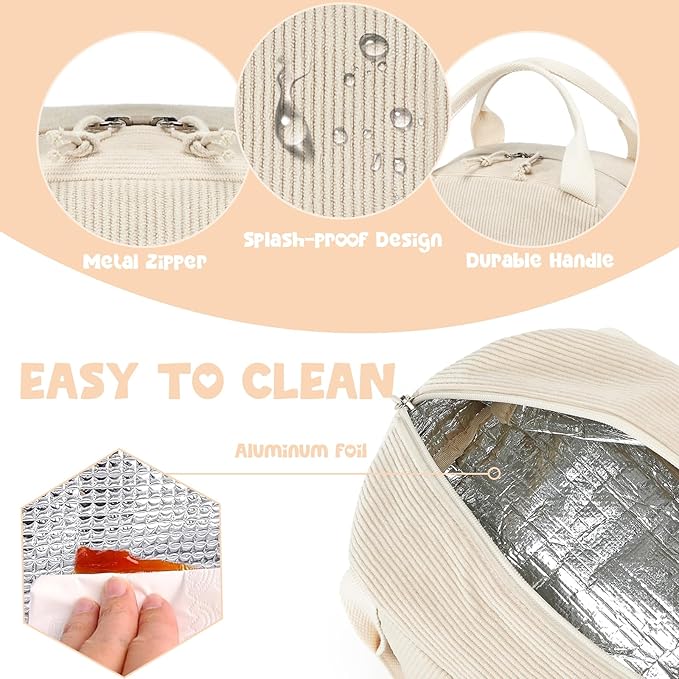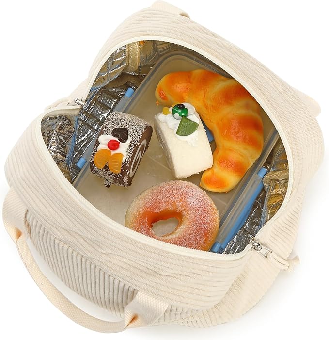 Bluboon Lunch Bag for Women Men Cute Corduroy Lunch Tote Bags Reusable Insulated Lunch Box Large Capacity Reusable Insulated Cooler for Work Picnic or Travel
