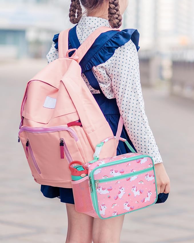 Bagseri Lunch Bag for Kids - Insulated Lunch Box for Girls Leak-Proof and Reusable Lunch Bag for Girls Toddler Lunch Box for Daycare and School, Pink Cute Unicorn