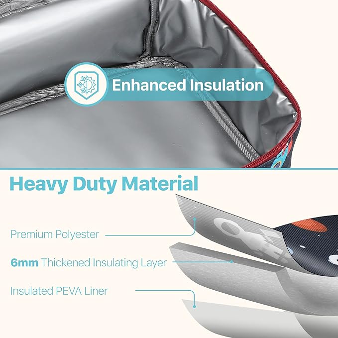 - Superior Insulation Keeps Food Fresh: Engineered with 3-layer insulation material, this kids insulated lunch box maintains the temperature of your child's food, ensuring it stays fresh and tasty until lunchtime. Ideal for keeping sandwiches cool or soup warm!