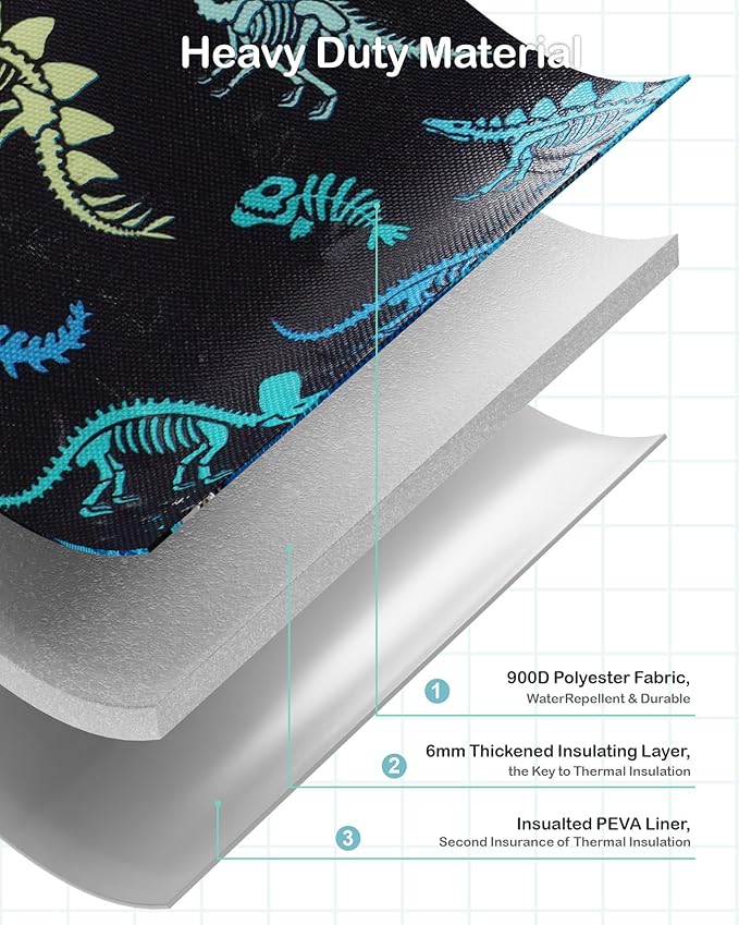 - Leak-Proof Lining for No Messes: Say goodbye to accidental spills and leaks! Our boy lunch box features a robust, leak-proof lining, making it perfect for carrying drinks and wet foods without any worry of messes in backpacks or on clothes. And the PEVA liner is easy to clean, simply wipe with a damp cloth or tissue if dirty