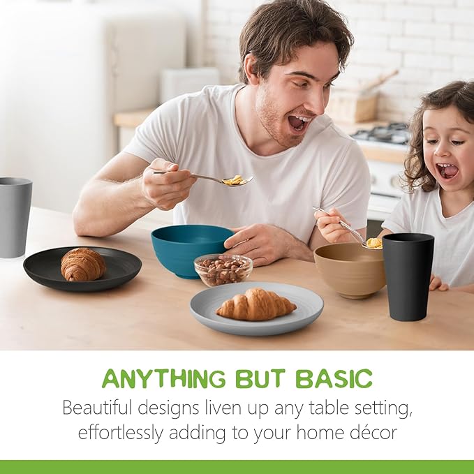 - PACKAGE INCLUDE: This wheat straw dinnerware sets include 32 pieces in total. Easy to match your existing flatware.