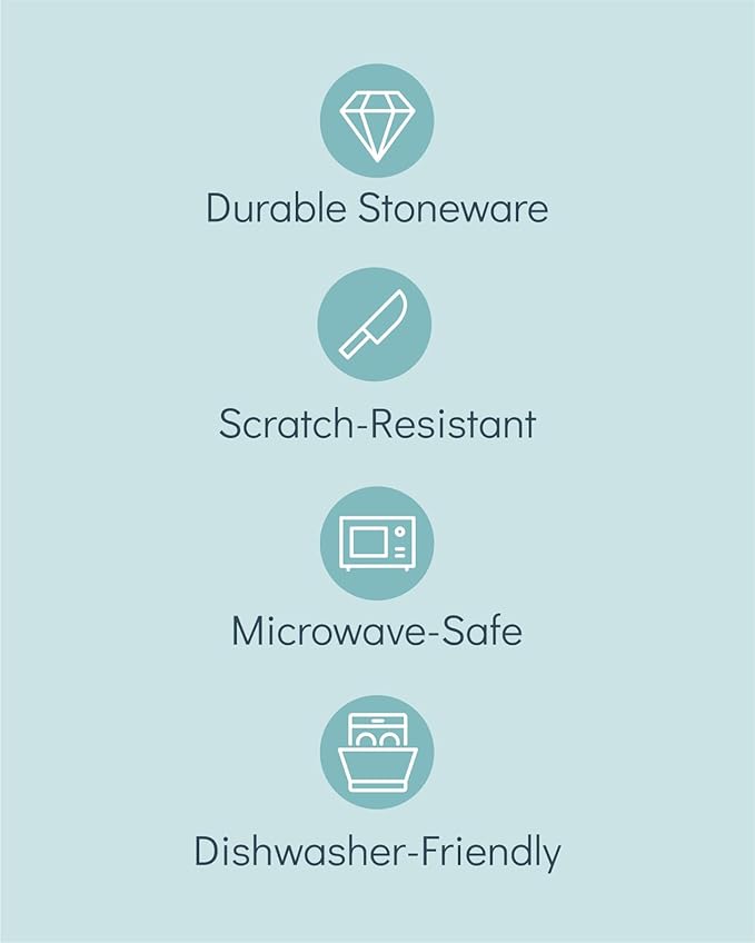 - ✅ PURE JOY & CULINARY DELIGHT: Expertly crafted from solid stoneware with a high-fired, matte-glazed, and scratch-resistant surface, this dinnerware set is designed for those who value premium quality and a refined dining experience.