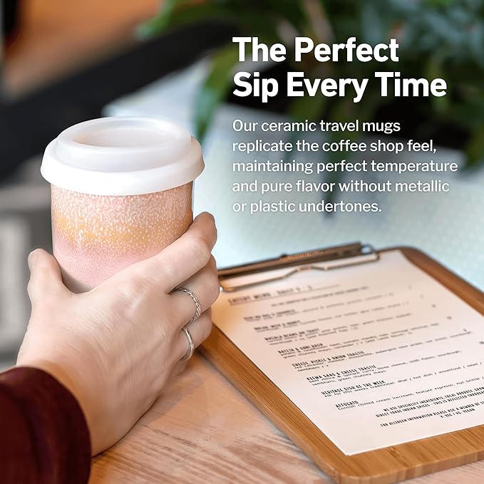 - COMPROMISE FREE TASTE - Our top-grade ceramic travel mugs replicate the coffee shop feel. They keep your drink at the perfect temperature, preserving the pure flavor without any metallic or plastic undertones