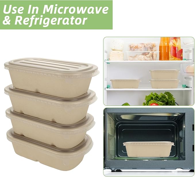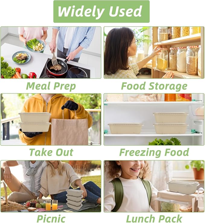 - HIGH QUALITY: Meal prep containers are made from natural bagasse fibers, a biodegradable material that makes them thick, durable, unbreakable and environmentally friendly.The PP lids are translucent, heat resistant, thick and sturdy, and safe to use in direct contact with food