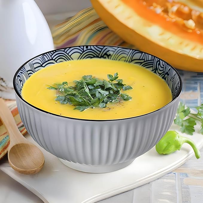- Durability: The material appears to be high-quality ceramic, which is often microwave and dishwasher safe, suggesting that these bowls are durable and designed for both convenience and longevity in a home kitchen setting.