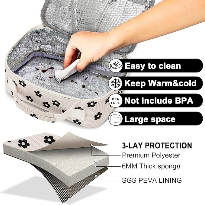 - Kids lunch bag Size: 8.7"*6.3"*7.5" (22cm* 16cm*19cm), spacious to fit two 750ml lunch containers, drinks and fruits. Insulated inside to keep your food fresh for few hours with ice packs