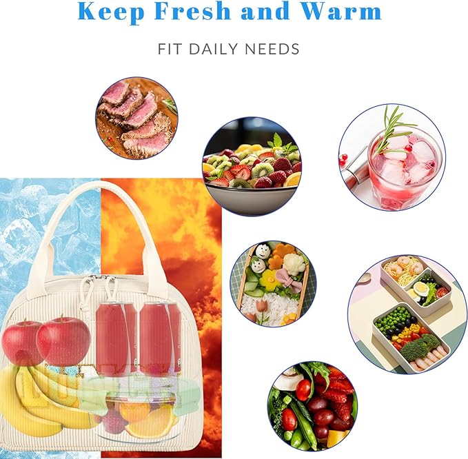 Bluboon Lunch Bag for Women Men Cute Corduroy Lunch Tote Bags Reusable Insulated Lunch Box Large Capacity Reusable Insulated Cooler for Work Picnic or Travel (Corduroy beige+lunch)