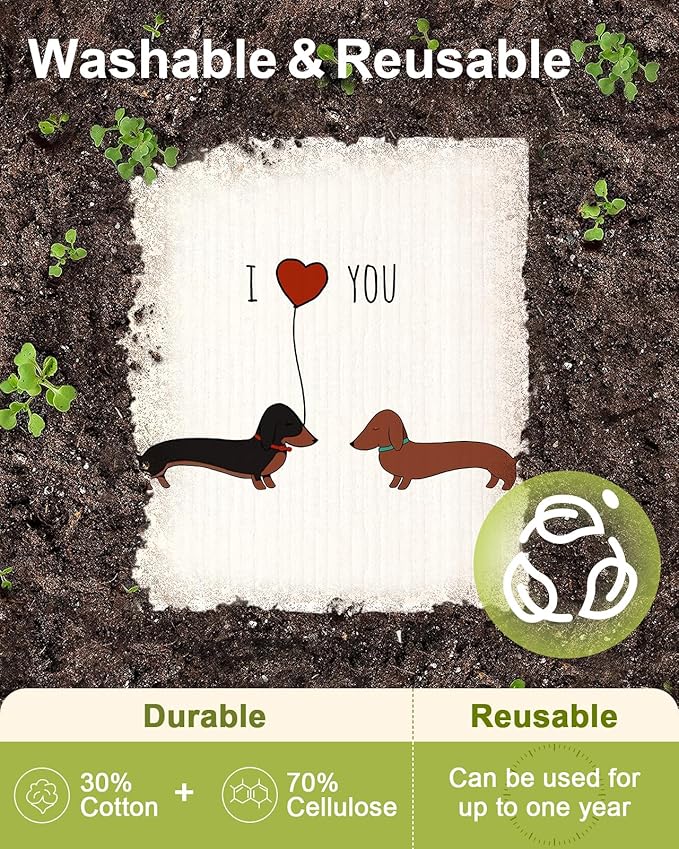 6 Pack Swedish Dishcloths for Kitchen - Reusable Dish Cloths for Washing Dishes Absorbent Cute Funny Kitchen Towels Cleaning Sponge, Love Dachshund