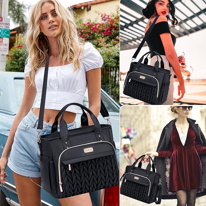 Weitars Insulated Lunch Bag for Women,Leak Proof Lunch Box for Work,Extra Large Lunch Tote Bag With Removable Shoulder Strap with Side Pockets,Reusable Lunch Bag For Picnic Hiking (Black-02)