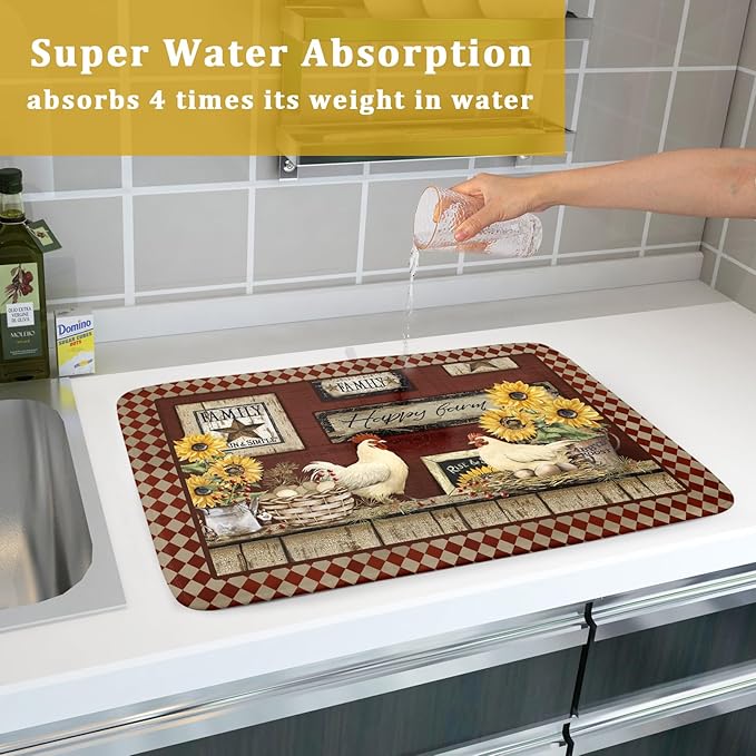 - 【Protect Tableware】Place your dishes on it or under dish racks, the country cock dish mat prevents bowls, glassware, and more tablewares from being scratched or worn, can be used as dish drying mat, sink mat, dishes drainer mats to keep the countertop dry and tidy.